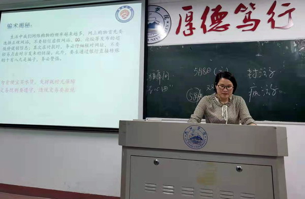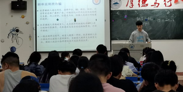 活动伊始,班主任老师及各班班长向同学们介绍了“什么是电信诈骗”、“电信诈骗的常见形式”、“如何识别防范电信诈骗”以及“上当后的补救措施”等,列举了一些现实生活中的电信网络诈骗案例,使同学们对其有了更加深刻的认识。