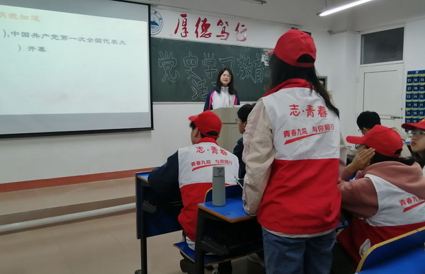 活动中,主持人介绍了本次动的背景和目的。随后,四位主讲人分别介绍了党的百年光辉历史、雷锋精神的主要内涵、革命烈士方志敏和叶挺的的光辉事迹,同学们一同了解党史、学习党史、畅谈党史,共同回忆中国共产党的百年光辉历程,号召全体青年志愿者学习党史,在学史明史讲史中展现新作为。在党史知识知识竞答环节,同学们积极参与,积极抢答,气氛非常活跃。志愿者们在比赛中增强了对党史知识的了解。