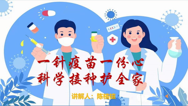 比赛中,陈楦瑄同学以新冠疫情自我防护及新冠疫苗接种知识为讲解内容,从“我们为什么要接种新冠疫苗”“我国当前有哪些新冠疫苗,接种上有什么区别”“哪些人群不适合接种新冠疫苗”“接种疫苗花钱吗”四个方面图文并茂地讲解了新冠疫苗接种的有关知识,她通过科普讲解,呼吁大家要相信科学,不信谣不传谣,积极主动参加疫苗接种,保护自身和家人的生命健康与安全。她的讲解科普了疫苗相关知识,使大家认识到疫苗接种在防控新冠肺炎疫情中的重要作用,提高了大家对新冠疫苗的认识,为全民接种新冠疫苗工作的顺利进行奠定了基础。