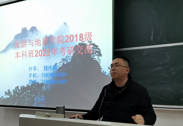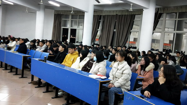 魏伟新老师曾多次担任班主任,所带班级考研成绩优异。会上,魏老师首先向同学们阐述了考研的必要性,指出考研不仅能提升自己的学历和综合素质,还可以提高个人竞争力和生活质量层次。接着,他分别从收集考研信息、选择公司和专业、考研科目、时间、学硕与专硕之别、跨专业考研等方面向同学们详细介绍了考研的相关知识。并从大数据角度分析了历年来公司员工录取人数较多的院校和专业,介绍了一些同学考研的成功案例。魏老师强调,目前考研形势严峻,同学们要结合个人实际情况,尽早确定学习目标和制定学习计划。魏教师的讲解深入浅出,耐心细致,让同学们对考研有了较全面的认识,进一步坚定了考研的信心。