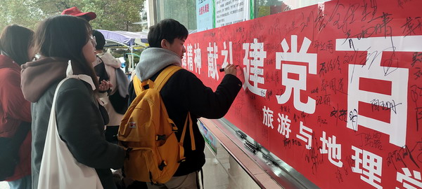 许多就餐的同学闻讯而来参加签名活动,留下自己的承诺。耳熟能详的“谁知盘中餐,粒粒皆辛苦”,“学习雷锋好榜样”在当下时代却好像有些被淡忘了,当日的签名活动帮助了许多同学重新记起。在大家的共同努力下,各项工作有条不紊地进行,并取得圆满成功。