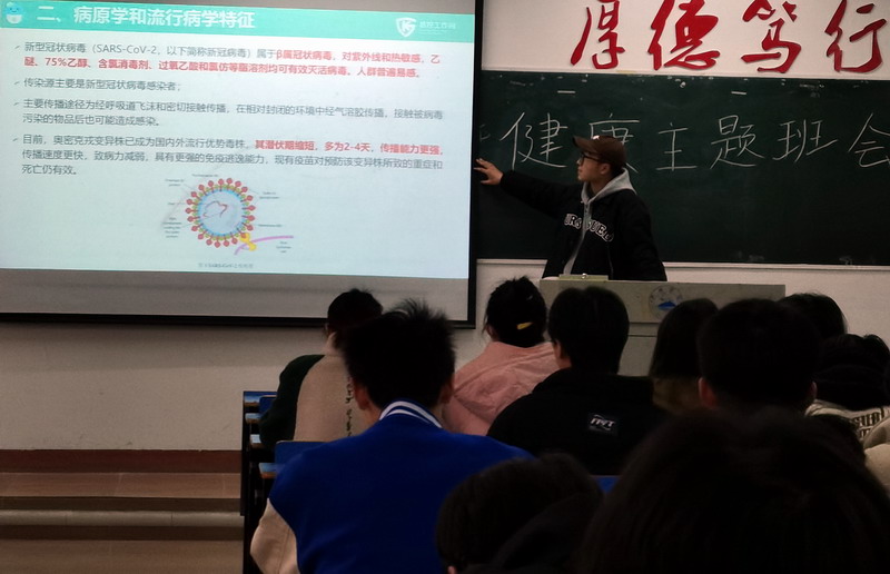 为深入贯彻习近平总书记关于新冠肺炎疫情防控工作的重要指示和重要讲话精神,落实教育部及公司有关疫情防控决策部署,保障公司师生生命安全、身体健康和校园稳定, 2月19日晚,XC体育利用晚点名时间在竞知楼各班教室举办“科学防疫,共享健康”主题班会,本次班会由各班班长主持,全体同学参加。