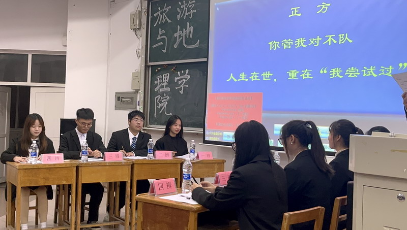 本场辩论赛由正方旅A2342班“你管我对不对队”对战反方旅A2312班“今天让你知道什么叫队”,双方围绕“人生在世,重在‘我尝试过’还是重在‘我没做错’”这个辩题展开激烈辩论。双方各下立论、对辩、驳论、质询、自由辩论,双方据理力争,互不相让,你来我往,精彩至极。