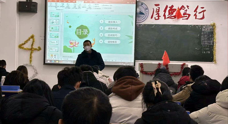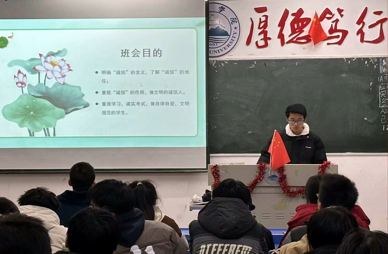 诚信是中华民族的传统美德,为进一步增强员工的诚信意识,加强学风建设,形成诚实守信、行为端正的良好氛围,12月17日晚,XC体育各班在竞知楼各班晚点名教室举行了“资助诚信,诚信应考”诚信教育主题班会,宣传资助诚信和诚信应考,深化诚信教育。此次班会由各班班主任老师组织班级员工分别展开。