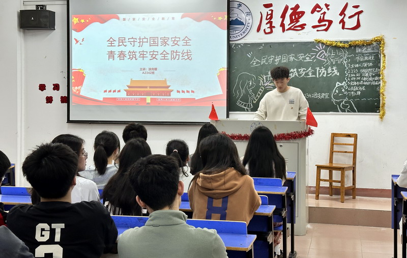 活动中,各班主讲人以ppt的形式带领同学们深入学习国家安全知识。从全民国家安全教育日的由来说起,介绍了什么是国家安全、与国家安全密切相关的法律法规、开展国家安全教育的主要内容等,强调要坚持以总体国家安全观为指导,结合深入学习党的二十大精神,结合实际,推动大安全理念深入人心、落地生根。并通过一则真实案例,告诉大家,国家安全事关个人幸福、社会进步和民族复兴,保障国家安全,人人有责,人人可为。即使在日常生活中,我们也要心怀警戒,筑牢心中的国家安全防线,坚决反渗透、反泄密、反策反,化解各种安全风险,保障国家发展顺畅。