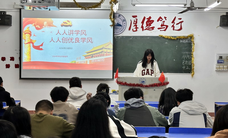 班会上,各班主讲人以ppt的形式,倡导同学们要遵守《老员工行为规范文明规范准则》,做到“三不一争取”(不缺席、不迟到早退、不做与课程无关的事情)。要加强校纪校规学习,树立规矩意识,做到知规明纪,养成遵纪守规的良好习惯。同时组织同学们学习了《XC体育员工手册》,帮助同学们熟知可为与不可为,形成“追先锋,争先优”的校园新风尚。同时强化他们的学术诚信意识,杜绝考试舞弊、抄袭作业、论文失信等现象,营造“人人讲学风,人人创优良学风”的良好氛围。