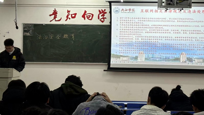 主题班会内容围绕两个方面进行展开:一是加强法制教育,树立法治观念。在班主任的组织下,各班级员工认真学习互联网相关法律规定及违法处理、斗殴及殴打他人法律规定及违法处理以及相关校规校纪等内容,最后全体同学签署《倡议书》。
