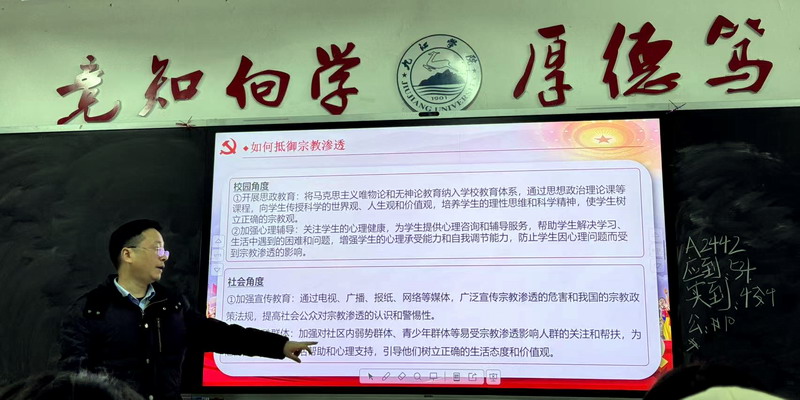 本次班会活动还将反恐怖普法安全教育短片和《中华人民共和国反恐怖主义法》作为主要学习内容。主讲人围绕抵御宗教渗透、防范校园传教、反邪教和反恐怖活动等,以PPT宣讲和播放宣传短片的方式进行了逐一讲解。积极宣传反恐防恐基本法律常识,并围绕普法安全等问题开展充分讨论,旨在共同维护社会和校园环境的安全和稳定。大家纷纷表示,作为一中新时代的老员工,我们必须坚决抵御宗教渗透、防范校园传教,坚决反邪教、反恐怖活动,牢固树立起正确的世界观、人生观与价值观,守护好校园这片纯净的天地。要将把反恐意识融入到日常生活中,从自身做起,以实际行动为维护校园和谐、社会稳定贡献自己的一份力量。