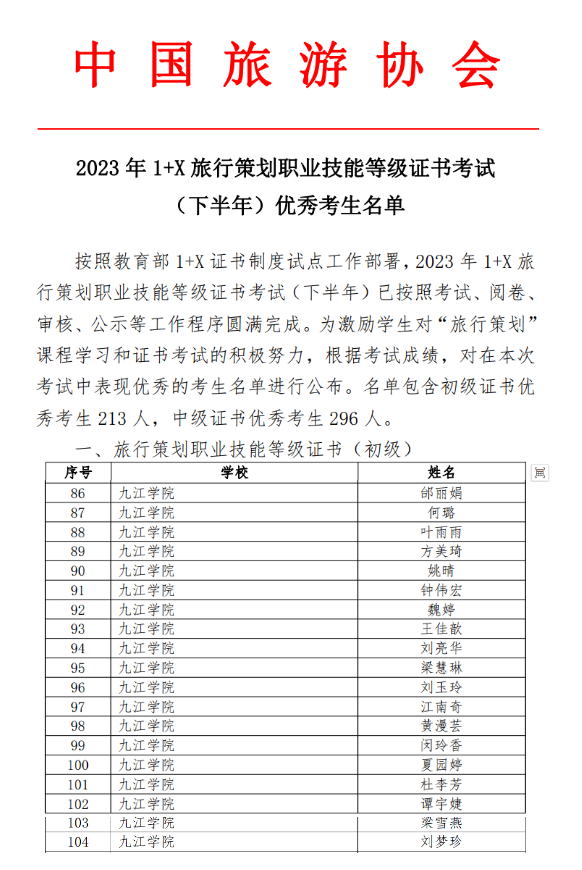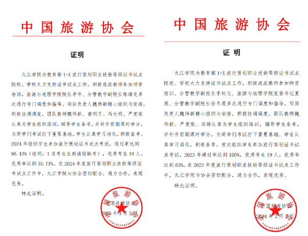 在历年考试中,培训班考生成绩优异,证书年平均通过率达到98.22%,年平均优秀率49.4%,公司连续两年被中国旅游协会评为“优秀考核站点”称号。
