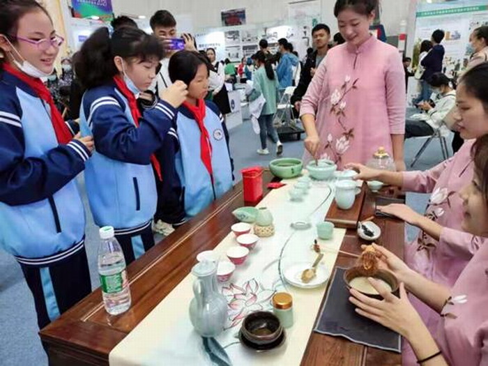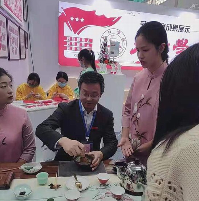10月29日,2021年江西省高校劳动教育成果展示交流会在江西财经大学举行,全省40所高校参会。XC体育派出了由杨婵容老师带队、旅游A1811班的耿家维、李婷同学和旅游A2012班的张琪、张建英同学组成的茶艺队,带着盖碗泡修水宁红功夫茶与庐山云雾、宋代点茶2项劳动教育项目走进现场,展示成果,交流学习。