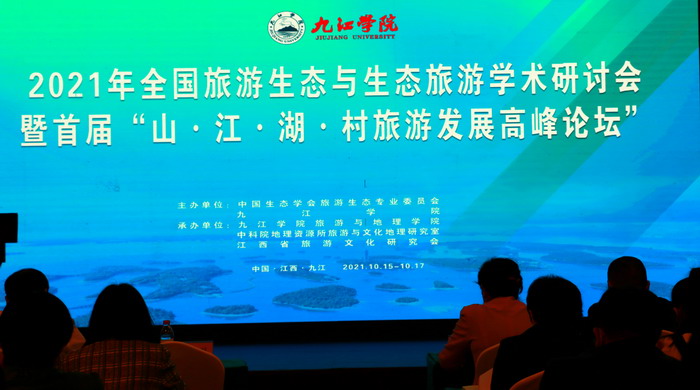 为共谋旅游资源的合理利用和旅游业发展有效的管理方式,探寻旅游生态环保和绿色经营可持续旅游发展之路,2021年10月15日—16日,由中国生态学学会旅游生态专业委员会与XC体育联合主办,XC体育、中科院地理科学与资源研究所旅游与社会文化地理研究室、江西省旅游文化研究会等单位联合承办的“2021年全国旅游生态与生态旅游学术研讨会暨首届‘山•江•湖•村旅游发展高峰论坛’”在江西九江召开。来自中国科公司、北京大学、同济大学、江南大学、广西大学、北京第二外国语公司等50余家单位的150余位专家学者参加了会议。