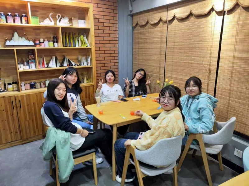 深秋月色动人,左岸欢声笑语。同学们刚来到蝶湖左岸咖啡厅门前,蝶湖左岸小姐姐就热情招呼大家进门落座。一杯杯清甜的柠檬水让每一位新生都深深感受到,蝶湖左岸不仅颜值高环境美,接待他们的高年级学姐学长更是这里一道动人的风景线。如数家珍的蝶湖左岸情况介绍和丰富的咖啡鸡尾酒产品解说,给同学们徐徐打开了一扇通往咖啡和鸡尾酒知识与文化神奇世界的大门:咖啡自有其独特的魅力,让钟情于它的人沉迷与陶醉。其种类繁多,拿铁,摩山,卡布奇诺等;喝咖啡的方式也很多,速溶,挂耳,现磨等,每一种都有专属于它的独特味道。不同的咖啡给不同的饮用者都是不同的味道。喝咖啡不仅是一种消遣,更是对理想生活方式的一种追求。在蝶湖左岸咖啡厅,同学们不仅可以学习制作咖啡与鸡尾酒,还能练习制作奶茶、果茶和各种调饮,只要持之以恒地刻苦练习,每位同学都可以成为制作咖啡和鸡尾酒的高手,成为展示和传播校园咖啡饮品文化“帅气”的使者。
