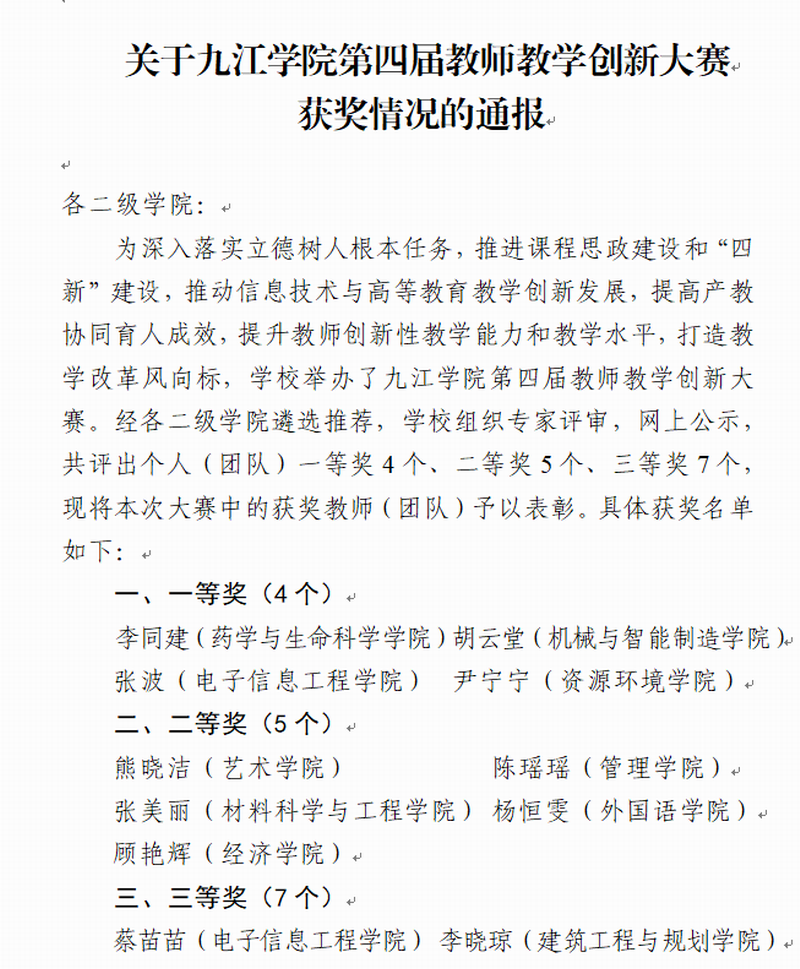 3月22日,公司发布了《关于XC体育第四届教师教学创新大赛获奖情况的通报》。经各二级公司择优推荐,公司组织专家评审,共评出个人(团队)一等奖4个、二等奖5个、三等奖7个。公司陈金花老师在本次大赛中荣获三等奖,为公司争得了荣誉。