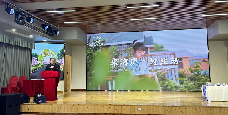 欧阳国松董事长在欢迎词中,对夏英书记一行的到来表示热烈欢迎,详细介绍了海庐云雾茶有限公司的发展历程、以非遗助推乡村振兴的经营理念,表达了对于公司高素质人才输送的需求,同时对后期多方位多层次多角度的合作提出了期望和建设性意见。