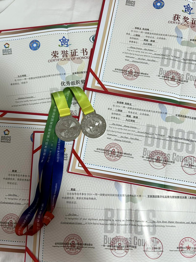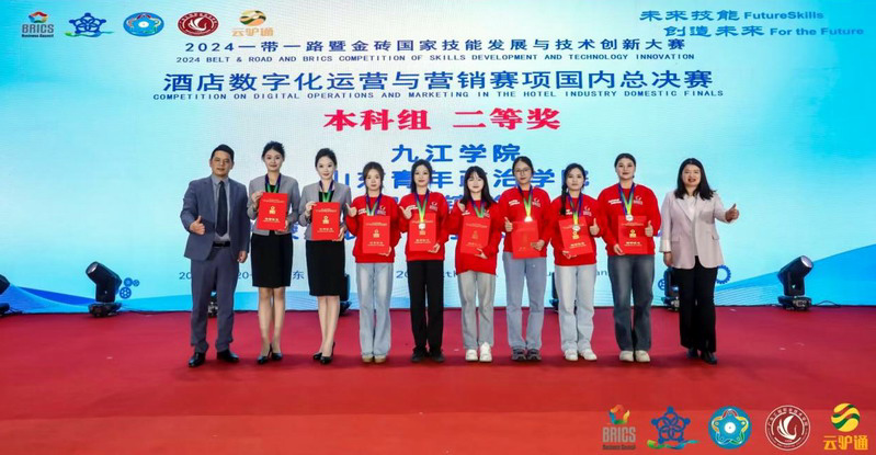 12月19日至23日,“2024一带一路暨金砖国家技能发展与技术创新大赛之首届酒店数字化运营与营销赛项(总决赛)”在广东工程职业技术公司(清远校区)举行。由XC体育酒店管理专业朱培梅、张陈玉2名同学组成的XC体育代表队在郭清、贾超两位老师的指导下,凭借出色的表现斩获二等奖,XC体育荣获“优秀组织奖”,郭清老师和贾超老师荣获“优秀指导教师”称号。