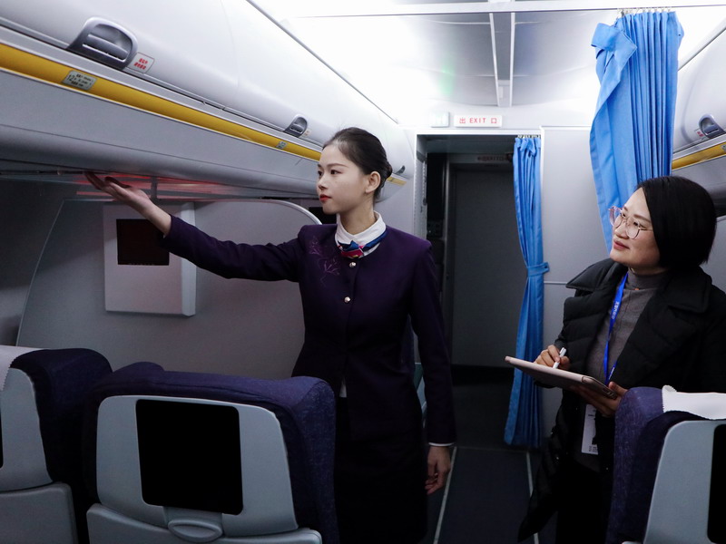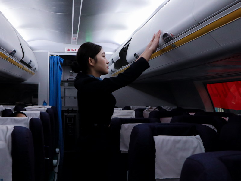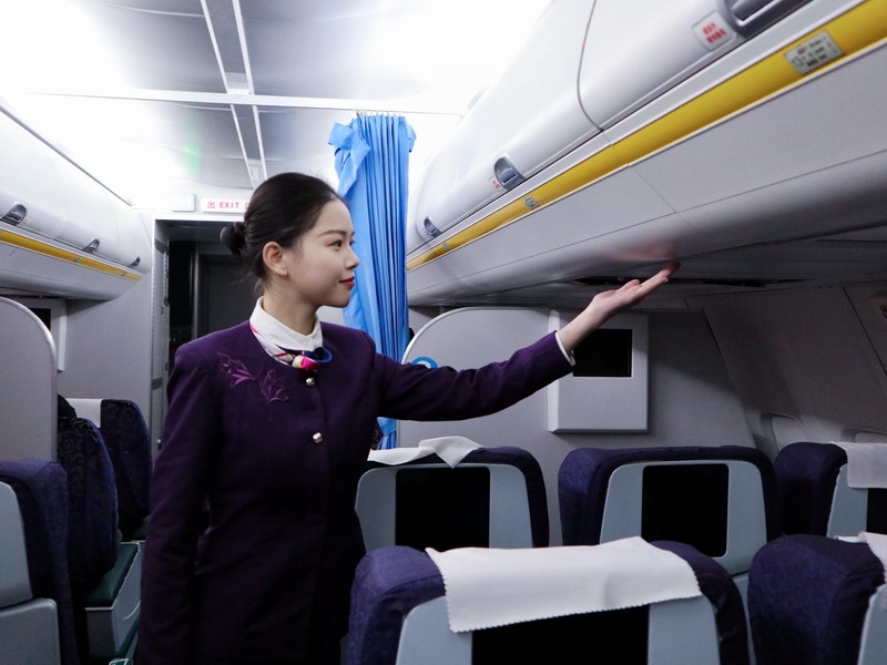 考试内容分为理论和实操两个部分。理论考试检验了员工们对空中服务相关知识的掌握程度;模拟舱实操通过实训楼模拟舱全流程服务,全面考查了员工们的团队协作和应急处置能力。