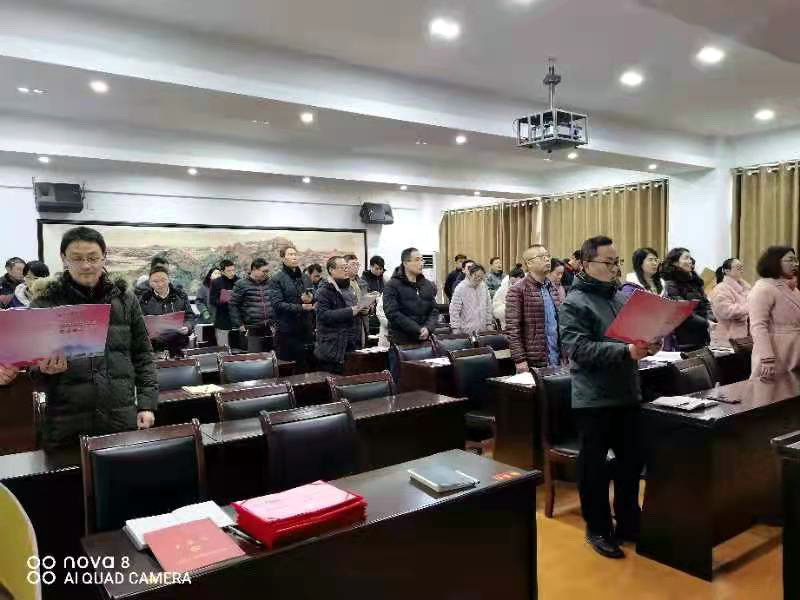 会议开始前,全体起立,共同唱响红色歌曲《没有共产党就没有新中国》。