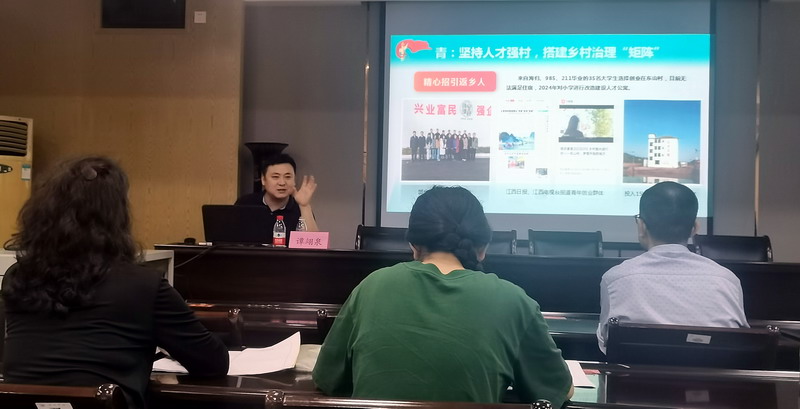 在中国共产党建党103周年纪念日来临之际,为进一步学习宣传全国劳动模范和先进工作者的先进事迹,充分发挥先进典型的示范引领作用,6月28日上午,XC体育教工第二支部组织开展“弘扬师德师风,展现党员风采”主题党日活动,邀请全国先进工作者、公司团委办公室主任、武宁县官莲乡东山村党支部书记谭翊泉作了题为“把青春写在希望的田野上”事迹报告。公司党政领导班子成员、教工第二党支部、员工党支部全体党员师生到场聆听了报告,报告会由教工第二党支部书记崔明月主持。