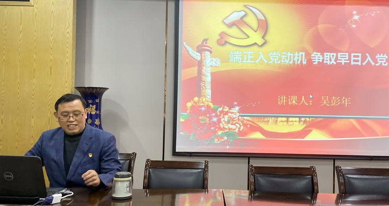 公司党委副书记、分党校副董事长吴彭年以“端正入党动机,争取早日入党”为题,从“什么是正确的入党动机”“为什么要端正入党动机”“如何在实践中不断端正入党动机”“如何积极创造条件以实际行动争取早日入党”“党员义务与老员工活相结合”五个方面展开授课,他强调,作为一名入党积极分子,切实端正入党动机,走好入党第一步。要在日常学习生活中,严格对照党员标准,充分发挥先锋模范作用。要自觉遵守党的纪律、法律法规、校规校纪,服从组织安排,积极完成各项任务。