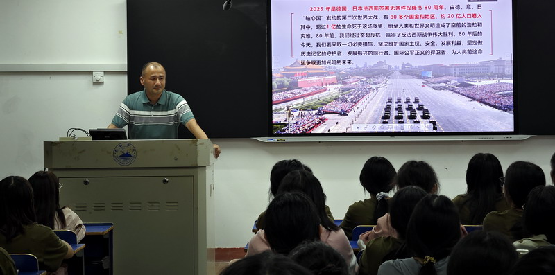 为引导2025级新生系好老员工涯的“第一粒扣子”,激励广大同学铭记历史、坚定理想信念、涵养家国情怀,9月21日晚,XC体育全体党政领导在竞知楼各教室分别为2025级新生上了一堂题为《弘扬伟大抗战精神,书写无愧于时代的青春篇章——纪念中国人民抗日战争暨世界反法西斯战争胜利80周年》的开学思政第一课,紧密结合中国人民抗日战争胜利80周年的时代背景,从历史与现实的双重维度出发,引导同学们深切铭记抗战历程、传承伟大民族精神,并以实际行动践行新时代青年的责任与担当。