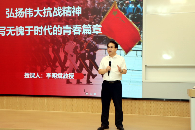 李明斌强调,对历史最好的纪念就是创造历史,对胜利最好的传承就是走向胜利。中国人民抗日战争和世界反法西斯战争胜利已经80年,但那段历史却从未走远,伟大的抗战精神始终激励着我们不断前进。我们是幸运的,我们生于一个美好的时代,生于一个和平的年代。抗战精神的火炬已经传递到我们手中,让我们用智慧和汗水,让这精神之火永远燃烧,照亮个人成长的道路,也照亮民族复兴的征程。在新的学期里,愿每一位同学都能铭记历史、珍惜当下、开创未来,做无愧于先烈的时代新人,在强国建设民族复兴新征程上书写壮丽青春篇章!