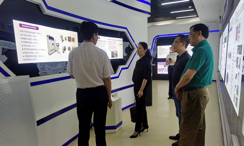在江西省智能制造产业技术研究院,白聚勇总经理首先带领大家参观制造研究中心,详细介绍了研究中心的基本情况、组织架构和发展模式,表示现阶段研究中心对高素质人才需求量大,希望全面加强校企合作,在满足企业用人需求的同时促进双方发展。