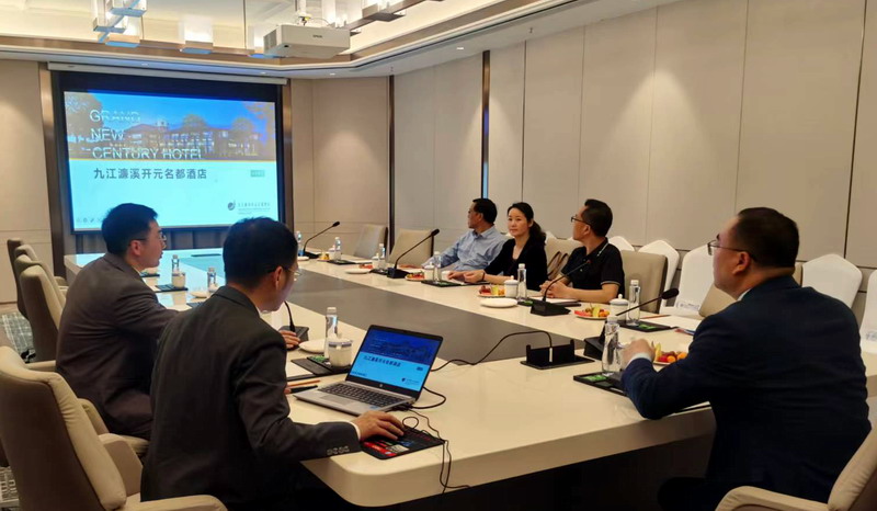 夏英对刘总一行的热情接待表示感谢,并介绍了公司和公司办学资源、团队力量、人才招聘、人才培养机制与培养成效等方面情况,指出作为九江高端酒店的代表,九江濂溪开元名都酒店设施一流,服务一流,企业文化浓厚,非常适合旅游专业开展校企合作、产教融合工作。通过洽谈和交流,深刻感受到酒店对高端服务人才需求以及深化校企合作的渴望,双方在人才培养、员工去向落实等方面合作空间巨大,希望双方发挥优势、资源共享、互利共赢,共同提升人才培养质量,帮助毕业生实现高质量就业,共同探索出促进双方高质量发展的合作新路径。双方与会人员围绕人才需求、培养,企业员工职业发展等方面进行了深入交流。