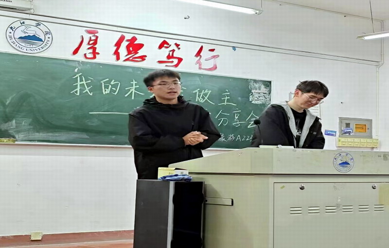 分享结束后,朱发苗同学进行了总结,对参与分享的徐美智学长表示感谢,同时希望全班所有同学向榜样学习,接续奋斗,在属于自己的未来精彩人生道路上闪闪发光。