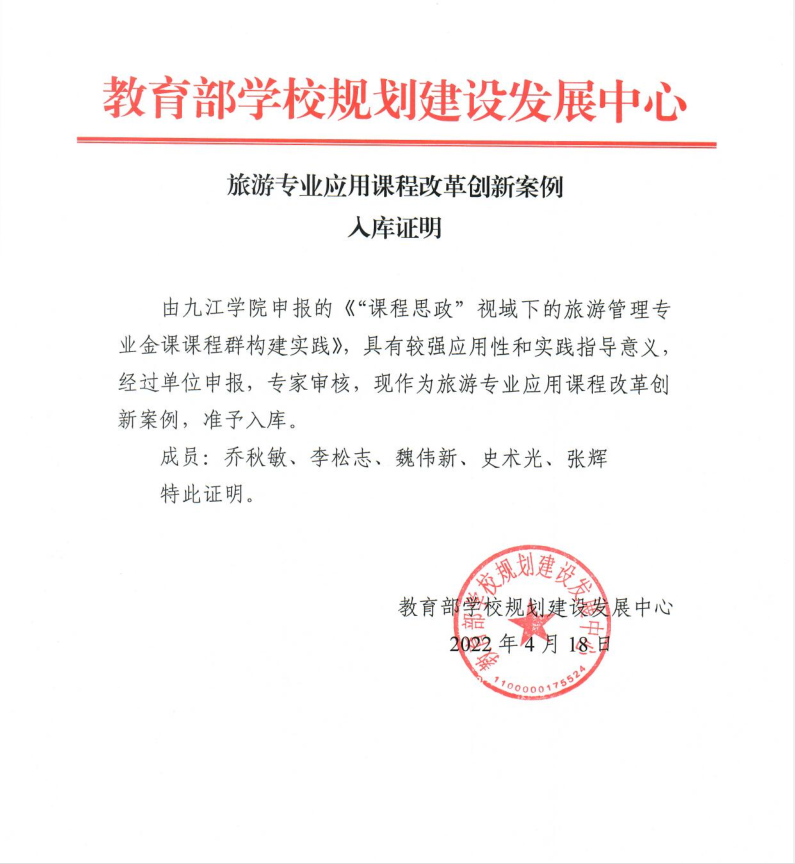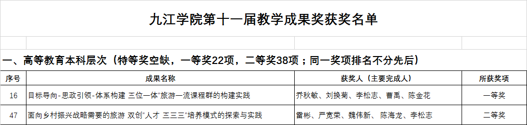 积极申报旅游管理省级教学团队。2022年,公司旅游管理专业获批国家级一流本科专业,江西省四星级本科专业。旅游管理省级教学团队通过中期建设检查,并积极推进地理科学教学团队申报及建设工作。2022年,公司申报校级教学成果奖5项,乔秋敏等老师负责的《目标导向-思政引领-体系构建“三位一体”旅游一流课程群的构建实践》获校级一等奖,雷彬等老师负责的《面向乡村振兴战略需要的旅游“双创”人才“三三三”培养模式的探索与实践》获校级二等奖。
