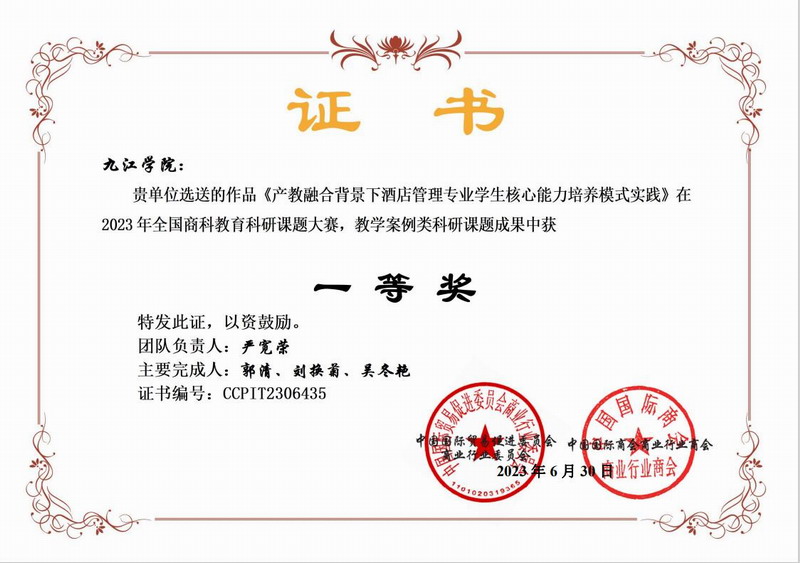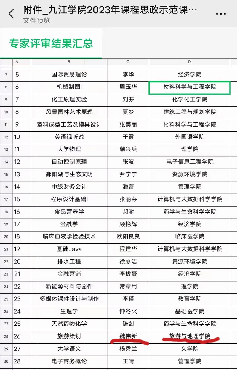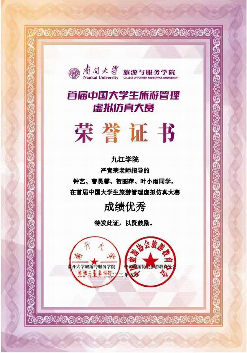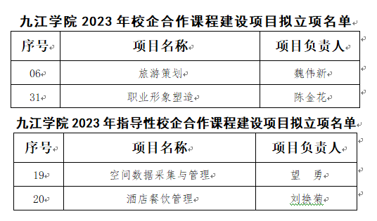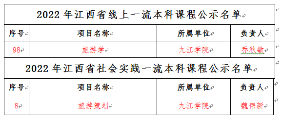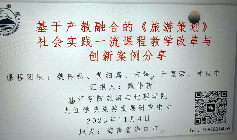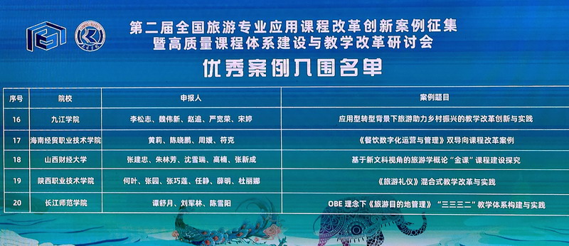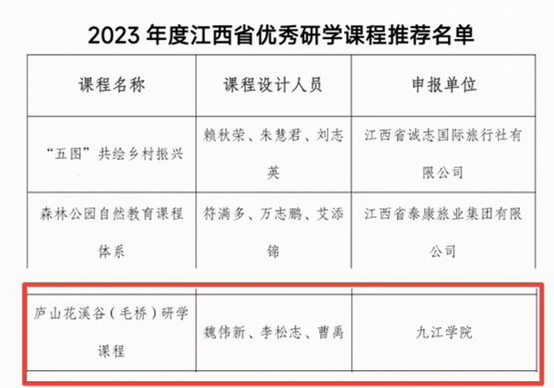 同时,公司有2门课程获批省级一流课程。乔秋敏主持的《旅游学》认定为线上一流本科课程,魏伟新主持的《旅游策划》认定为社会实践一流本科课程。2门课程获批XC体育校企合作课程。魏伟新申报的《旅游策划》课程和陈金花老师申报的《职业形象塑造》课程成功成为公司2023年校企合作课程建设立项建设课程,《旅游策划》课程还被推荐申报省级校企合作课程 。2门课程获批XC体育指导性校企合作课程。望勇老师申报的《空间数据采集与管理》和刘换菊老师申报的《酒店餐饮管理》课程立项为XC体育2023年指导性校企合作课程建设项目。魏伟新老师的《旅游策划》获批校级“课程思政”示范课程。魏伟新、李松志、曹禹设计的课程《庐山花溪谷(毛桥)研学课程》获2023年度江西省优秀研学课程。2门实践课案例入选教育部旅游专业应用课程改革创新案例库,其中,李松志、魏伟新、赵追、严宽荣、宋婷等5位教师共同编写的《应用型转型背景下旅游助力乡村振兴的教学改革与创新》案例获第二届全国旅游应用课程改革创新案例,魏伟新、黄细嘉、宋婷、严宽荣、曹良中申报的《基于产教融合的旅游策划社会实践一流课程教学改革与创新》案例入选教育部公司规划建设发展中心课程改革创新案例库。