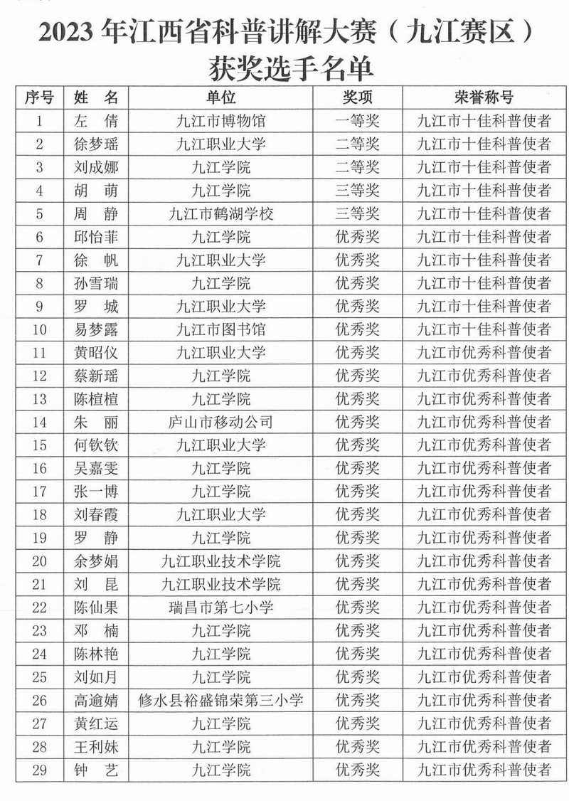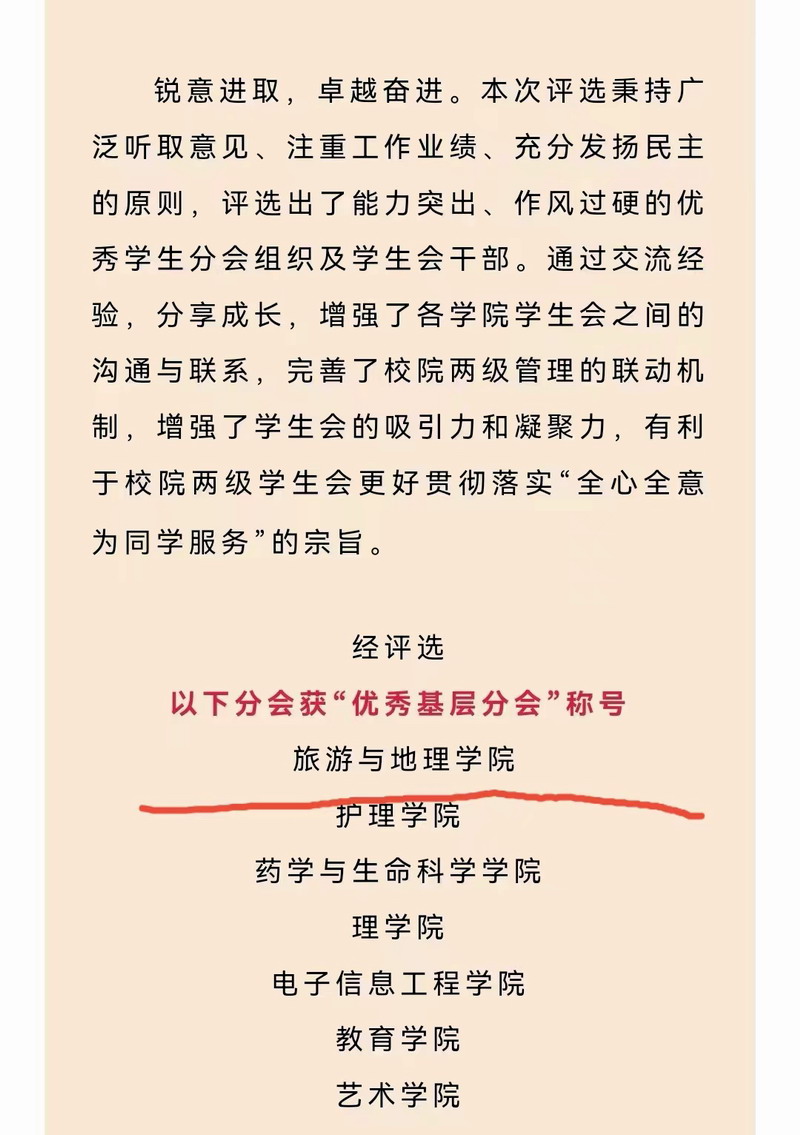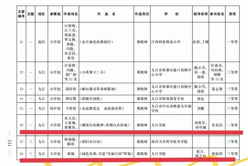 2023年,公司坚持立德树人根本任务,多措并举,精准发力,团学工作成绩喜人。2月,公司学子在江西省科技厅主办的第二届江西省科普微视频大赛中有4项作品获奖,包括三等奖3项,优秀奖1项,曹铭老师荣获“优秀指导教师奖”荣誉称号。其中,刘伟斌等创作的《科普小视频之浮萍》、廖淦文创作的《格陵兰岛比澳大利亚大?》、龙可怡等创作的《“碳”索未来,始于“足”下》等3部作品荣获三等奖,曾泽诚等创作的《南浔铁路百年变迁》荣获优秀奖;2月,由李海老师指导,A2151班邓楠、A2121班刘伟斌同学拍摄的《讲好瑞昌革命故事,传承红色精神力量》作品获江西省高校“红色走读”大赛三等奖;3月,A2212班孙雪瑞同学在校“诵读红色经典,感受信仰力量”朗读大赛中斩获亚军;4月,公司王芬芬同学的作品《魅力浔阳》、蓝希平、林俊杰同学的作品《庐山文化大观》、李高萱同学的作品《江西玩全攻略之浔阳楼》、李晓燕的作品《庐山别墅大观》入选2022年“书海好景”文旅融合图书推荐创意短视频征集展示活动展示名单;4月,A2021班文宇轩同学获得2022年“叔子爱莲奖学金”,A2021班杨惠霖同学获得2022年“‘万心蕙一王霈’十佳师范生”荣誉称号;5月,公司团委荣获2022年度“全市五四红旗团委”称号;5月,公司辩论队在XC体育第二十届“校园杯”辩论赛决赛中荣获亚军,三辩刘沫含同学获得决赛场次“最佳辩手”的称号;5月,公司邓楠、张一博、孙雪瑞、陈楦楦、罗静、陈林艳、刘如月、黄红运、王利妹、钟艺等10位同学参加了2023年江西省科普讲解大赛(九江赛区)讲解大赛,获得优秀奖和“九江市优秀科普使者”称号;5月,公司团委荣获公司“五四红旗团委”称号,A2122团支部、A2131团支部、A2151团支部等荣获“全校五四红旗团支部”称号。个人荣誉方面,A2111习嘉鹏等28名同学荣获“全校优秀共青团员”称号,A2121冷洋洋等13名同学荣获“全校优秀共青团干部”称号;5月,A2022班杨雨婕、A2051班陈楦楦同学演绎的朗诵作品《大写的中国》荣获江西省第四届中华经典诵读大赛老员工组二等奖;5月,员工党支部报送的主题党日活动“参观红色基地 追寻革命精神”获公司优秀奖;5月,在2023“问途杯”第二届酒店数字营销技能大赛(本科组)总决赛中,公司由A2151班的刘庚娇、王淑贤、占芷慧、汪宇飞组成的“经纶小队”获得全国一等奖,由A2051班袁文星、A2151朱嘉儒、尹婷、龙可怡组成的“向阳队”获得全国二等奖,刘换菊老师获得优秀指导老师奖;5月,公司2019级地理科学专业员工任淇琪同学的微课作品《热岛环流对城市规划的影响》在《中学地理教学参考》举办的“2023年全国优秀地理教研成果评比”比赛中荣获微课组一等奖;5月,公司学子在校第十五届校园心理剧决赛中荣获二等奖。