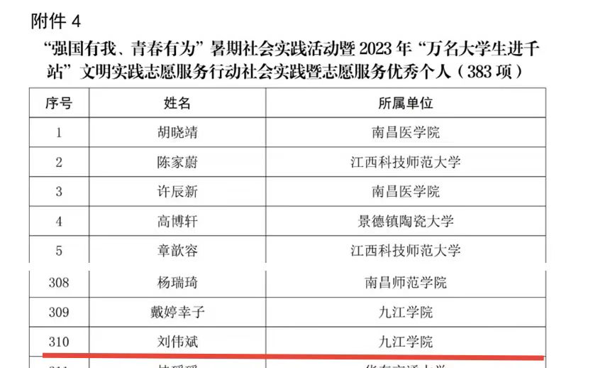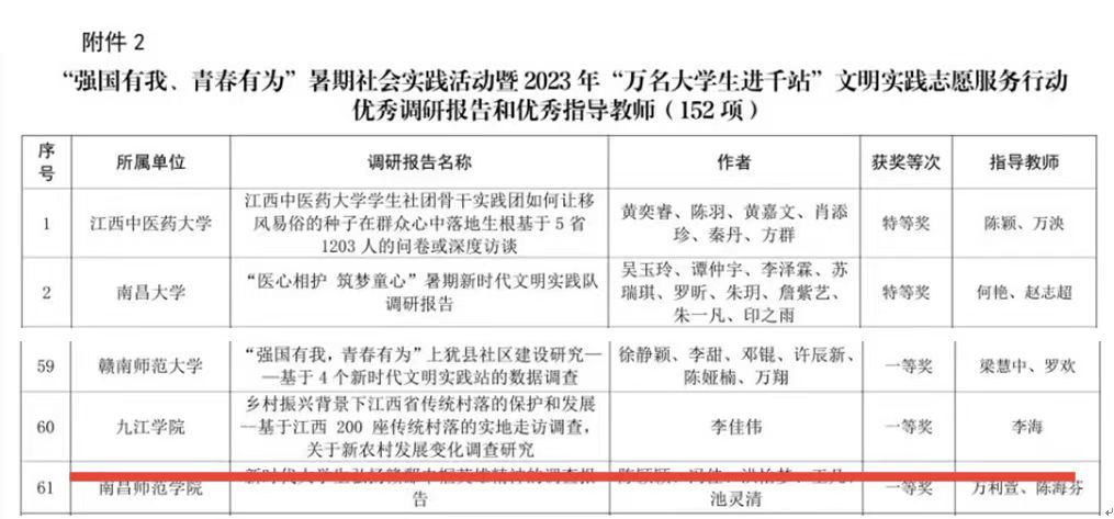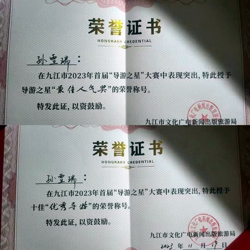 7月,公司组织2支“乡村振兴调研与服务实践队”赴修水县,围绕红色教育、教育关爱、科技支农、乡村振兴、文化服务、成才见习、传统村落保护等主题开展社会实践活动,今日头条、搜狐网、大江网等媒体纷纷予以报道;9月,全省老员工“思政课,我想对你说”征文和“青春之问”征集活动评审结果公布,公司员工在“思政课,我想对你说”征文活动中获一等奖1项,二等奖1项;在“青春之问”征集活动中获二等奖1项,三等奖1项;9月,公司获得2023年新生军训取得了会操和军训内务评比第一和第四的好成绩,连续十五年取得新生军训会操和内务好成绩,续写了辉煌;9月,公司员工在校“非凡成就铸辉煌,踔厉奋发担使命”主题征文活动中2022级共有3篇征文获奖。其中,A2231班姚远、A2221班苏祖鹏、A2211班陈佳语等3人荣获三等奖。公司员工科喜获“优秀组织奖”;10月,公司林娟同学制作的微视频作品《绿色发展,打造“美丽江西”样板》在全省“党的二十大精神暖人心”主题征稿活动中获三等奖;11月,在公司第七届“微团课”大赛中,公司孙雪瑞同学荣获二等奖,罗婷同学荣获三等奖;11月,公司6名选手参加了2023年九江市首届“导游之星”决赛,经过激烈的角逐,周颖、杨露露、刘如月等3名同学喜获九江市首届“导游之星”荣誉称号。孙雪瑞、张一博、肖惠芳等3名同学获喜获九江市首届“最佳导游”荣誉称号。孙雪瑞、周颖、张一博、杨露露等4名同学还获得本次比赛的“最佳人气奖”。乔秋敏、樊春梅、李翔宇、魏伟新等4名老师喜获“优秀指导老师”称号。