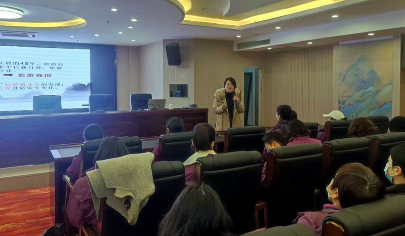 3月13日,九江市柴桑区江洲文化旅游投资有限责任公司总经理钱建富一行到院考察交流,就校企合作进行座谈交流并签署校企合作协议。3月16日—17日,庐山旅游发展委员会、庐山旅游集团公司举办2023年度庐山景区旅游从业人员培训班,乔秋敏和刘换菊老师应邀担任本次培训讲师,就庐山新版导游词及相关服务技能培训开展重点培训。3月17—19日,公司省级一流课程“传统村落调研与乡村振兴”课程团队来到修水黄沙镇传统村落,开展现场教学活动。3月19日,永修县举行“大美永修”文旅形象大使选拔大赛决赛,乔秋敏老师应邀担任评委。3月21日,李松志、朱民、曹良中、魏伟新一行4人赴武汉大学、华中师范大学进行考察交流,就二级公司如何定位、如何办出特色、科研与教学如何协调等做了交流。4月6日, 2023届九江市高三地理“二模”质量分析会暨专题复习展示课活动在浔举行,张力、周之良、王文彩3位教师作为专家受邀参会。4月17日,民进九江市委会第八届委员会第四次全体会议召开,曹铭、叶辉参加会议。5月14日,公司举办“2023级旅游管理专业培养方案修订”行业专家线上座谈会,江西明月山旅游集团有限公司副总经理郑东出席应邀参加线上座谈。5月20-21日,第二十一届全国高校旅游公司经理、系主任及专业负责人联席会在武汉商公司召开,李松志、严宽荣参加会议。5月16日,公司与共青城市文化广播电视出版旅游局达成合作协议,助力共青城市文旅局完成2023年九江市产业发展大会的讲解员讲解工作。