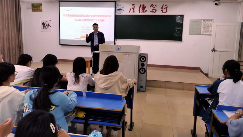 根据公司统一安排,今年10月,公司联系公司的校领导李松志副董事长为公司2023级新生讲思政课,勉励同学们要深刻认识中国式现代化的重大意义,准确把握中国式现代化的中国特色和本质要求,以推动高质量发展谱写中国式现代化新篇章,在强国建设民族复兴新征程上的使命担当。希望同学们能以勤奋学习为青春远航的动力,让增长本领成为青春搏击的能量,切实以优异成绩让青春在全面建设社会主义现代化国家的火热实践中绽放绚丽之花。