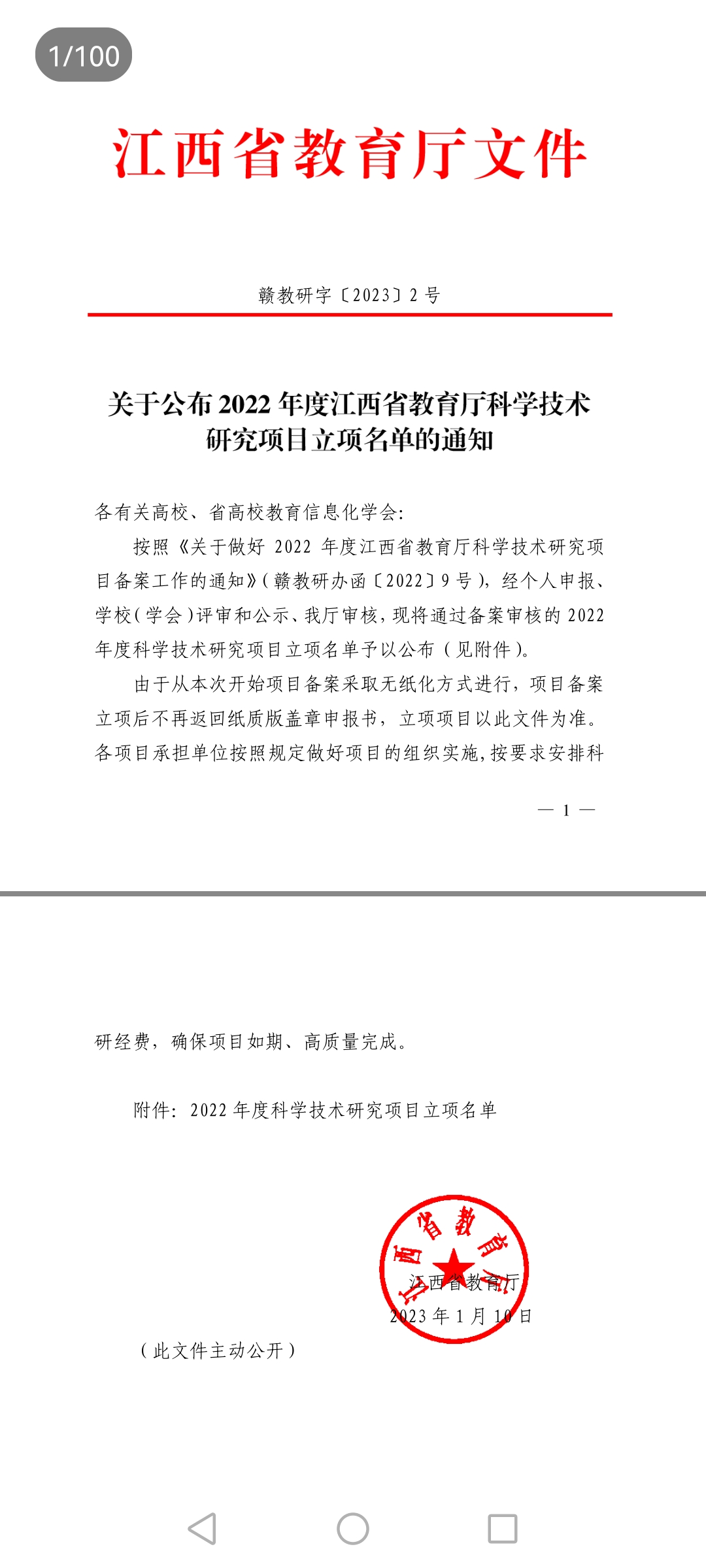 2023年,公司科研建设再创佳绩,在公司老师共同努力下,公司教师申报国家级项目10余项,申报省部级项目40余项,共立项各类课题17项:其中国家自科基金项目1项、教育部人文社科项目1项、省社科基金项目2项、省教育厅科技项目1项、省教育厅人文社科项目2项、省教育科学规划项目2项、省基础教育研究课题3项、省教改研究课题2项、市社联课题3项;发表各类论文21篇,其中SCI1篇、CSCD1篇、北大核心1篇;获批专利3项;出版专著4部;获国家一级学会一、二等奖各1项、获省社科优秀成果奖1项;获市政府研究中心技术合同认可1项。