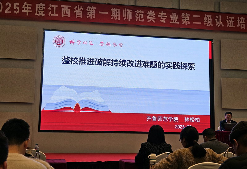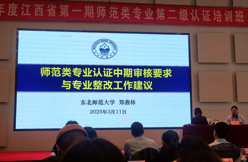 在为期两天的培训中,教育部师范类专业认证结论审定委员会委员、南京师范大学教育公司经理叶忠教授,教育部师范类专业认证结论审定委员会委员、东北师范大学信息科学与技术公司党委书记郑燕林教授,江西师范大学教育公司副经理刘碧珍教授,齐鲁师范公司党委书记林松柏教授先后作了报告。
