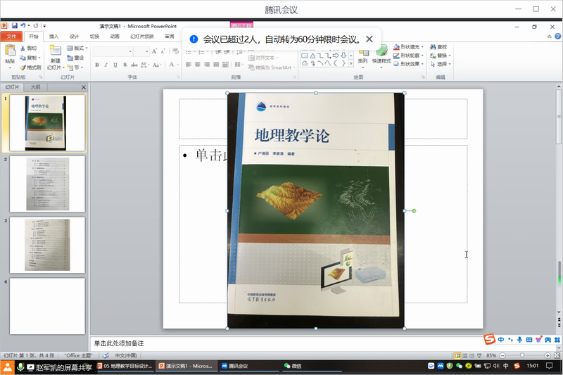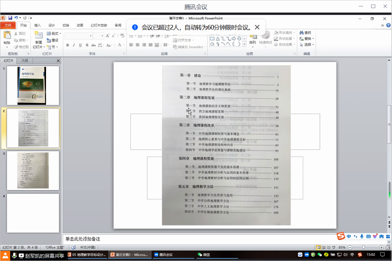 会议由陈海龙主持。赵军凯教授首先介绍《地理教学论课程》,赵教授从教材版本、教学内容、考试内容和形式详细介绍了课程。赵教授的《地理教学论》是一门实践性很强的理论课程,理论课时和实践课时各占32个课时,实践课时围绕课程设计,ppt制作和模拟上课展开,给每个员工尽可能多和全面的锻炼,该部分表现即为员工的期中考试成绩。