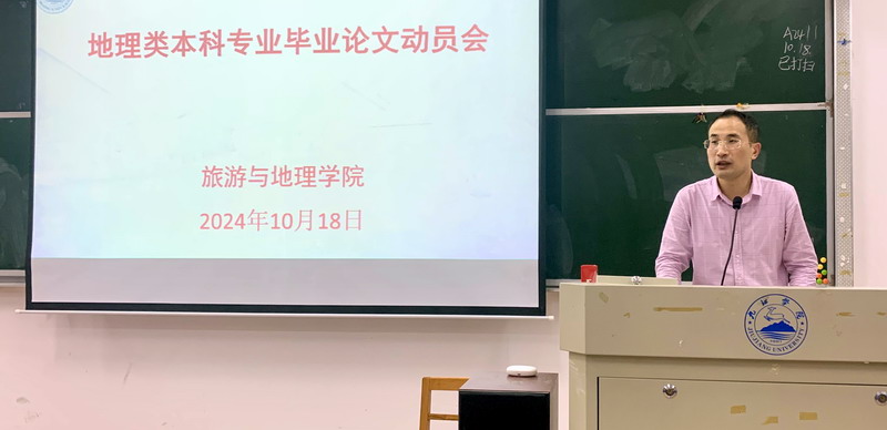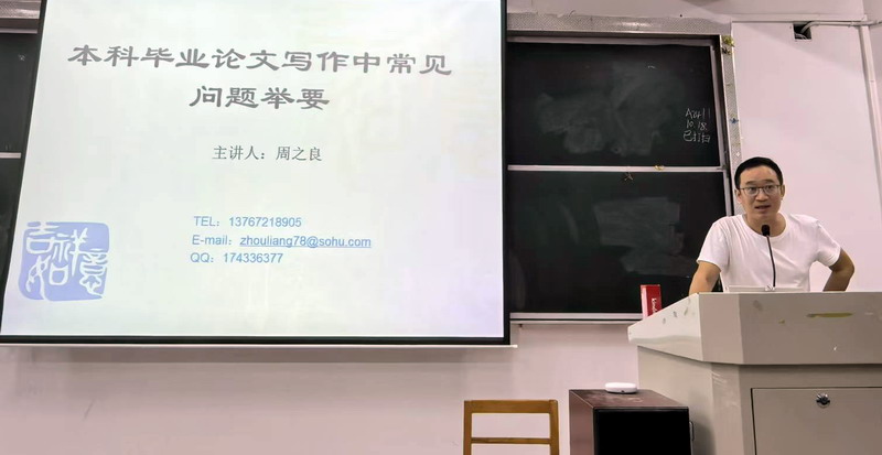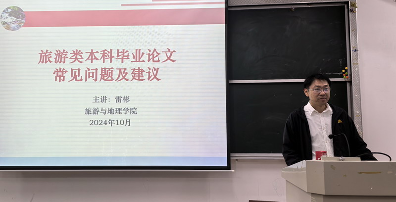 会上,周之良、雷彬老师分别就地理类和旅游类毕业论文要求进行了讲解。周之良老师详细讲解了地理类毕业论文写作的注意事项,从选题、资料收集、文献综述到论文结构、格式规范等方面,为员工们提供了全面细致的指导。详细阐述了论文写作的诚信问题和注意事项,提醒同学们在追求学术成就的同时,也要坚守诚信的底线。周老师的讲解深入浅出,让员工们对论文写作有了更加清晰的认识和把握。雷彬老师就旅游类毕业论文进行了讲解,他强调了论文写作诚信的必要性,鼓励员工们在撰写论文时要保持严谨的态度和求真的精神。指出了旅游学科的特殊性,深入浅出地讲了论文撰写的论文写作的基本要求和各个环节,帮助同学们更好地理解和把握旅游类论文的写作要点,使同学们对毕业论文的重要性和撰写流程有了更加清晰的认识。