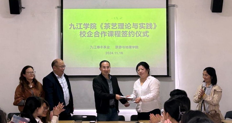 为推进校企协同育人,深化产教融合,促进培养应用型人才,公司不断探索开展校企共建课程,创新教学模式,提升专业课程教学质量。11月16日,XC体育携手九江如如茶村隆重举行校企合作课程集中签约仪式。XC体育副经理陈海龙、如如茶村研学经理刘珊、《旅游接待业》课程负责人严宽荣、《旅游学》和《茶艺理论与实践》课程负责人乔秋敏、《土地资源管理》课程负责人蔡萧出席签约仪式,签约仪式由魏伟新老师主持。