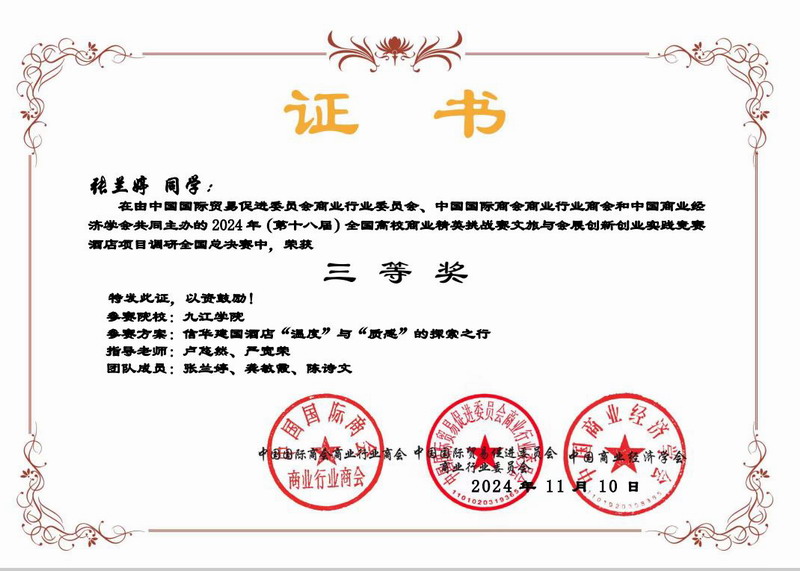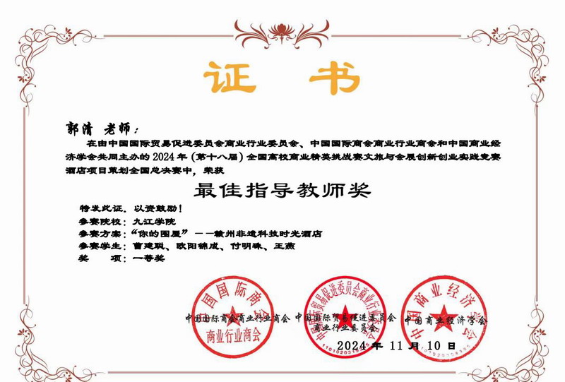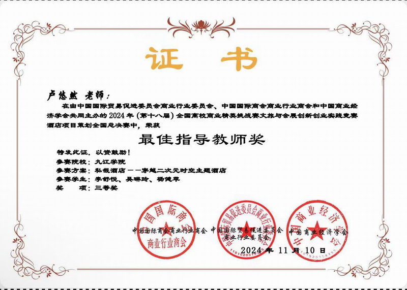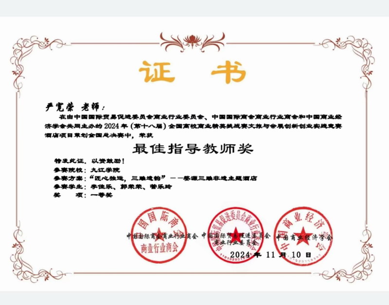 近日, 2024全国高校商业精英挑战赛文旅与会展创新创业实践竞赛全国总决赛落下帷幕。经过激烈角逐,公司学子最终获得国赛一等奖2项、三等奖3项;3名教师获得最佳指导教师奖。公司荣获最佳院校组织奖,获奖数量再创历史新高。