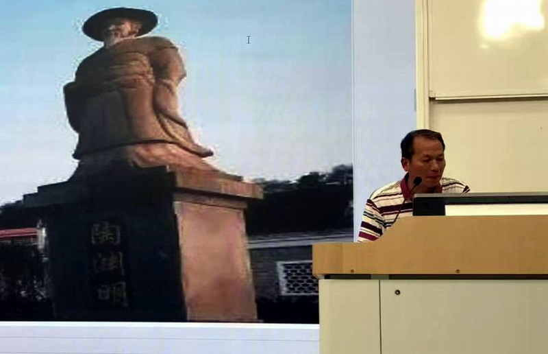 讲座中,余老师首先介绍了陶渊明的生平经历,从他早年的仕途波折,到最终回归田园的人生选择。陶渊明出身于官宦世家,却在东晋那个动荡不安、门阀制度森严的时代,屡屡碰壁。他曾出任江州祭酒、参军等职,但官场的黑暗与虚伪让他深感失望。“误落尘网中,一去三十年”,正是他对那段仕途生活的无奈感慨。最终,陶渊明毅然辞官,回到故乡,过上了“晨兴理荒秽,带月荷锄归”的躬耕生活。