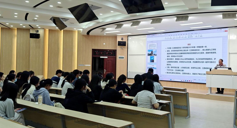 余老师以陶渊明生于浔阳柴桑(今江西九江)为切入点,向同学们介绍九江辉煌的历史文化,提出“九派浔阳郡,分明是画图”。九江,这座位于江西省北部的城市,不仅有着“吴头楚尾”的独特地理位置,更在历史的长河中,孕育出了陶渊明这样伟大的诗人。