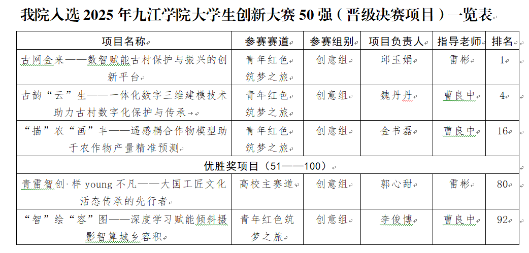 5月20日,公司发布了《关于2025年XC体育老员工创新大赛暨省赛选拔赛网评结果的公示》,全校共有51个项目进入校赛决赛,50个项目获得校赛优胜奖。公司《古网金来——数智赋能古村保护与振兴的创新平台》《古韵“云”生——一体化数字三维建模技术助力古村数字化保护与传承》《“描”农“画”丰——遥感耦合作物模型助于农作物产量精准预测》3个项目从100项评审作品中脱颖而出,成功入围前50强。同时《青雷智创 样young不凡——大国工匠文化活态传承的先行者》《“智”绘“容”图——深度学习赋能倾斜摄影智算城乡容积》2个项目获得校赛优胜奖。