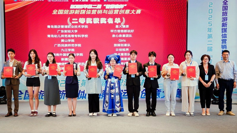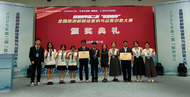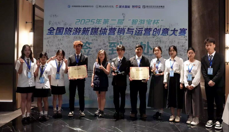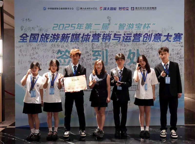 2025年6月6日——8日,第二届“智游宝杯”全国旅游新媒体营销与运营创意大赛决赛在宁波奉化举行。公司学子一路过关斩将,从全国各省600余支参赛队伍中脱颖而出,斩获二等奖、三等奖各1项。其中,由陈金花、崔明月老师指导,祝飞翔、邱淑珍、郑雅飞、徐坤钰、林磊、阿卜杜热合曼同学组成的队伍荣获二等奖,由朱民老师指导,裘家欣,姚宏焱,漆慧敏,李佳玲同学组成的队伍荣获三等奖,在旅游新媒体创意赛事舞台闪耀光彩。